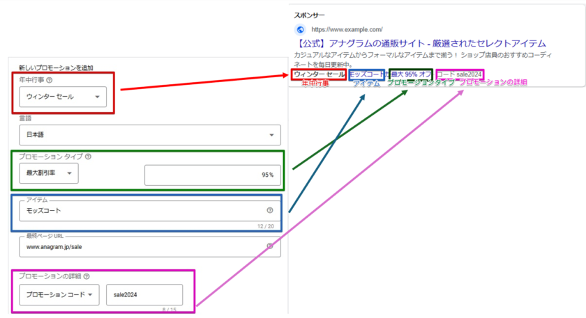 参考:プロモーション表示オプションの要件 - Google広告 ヘルプ