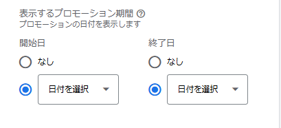 プロモーション表示オプションの配信期間を設定する場合の設定について説明します。