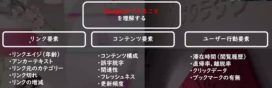 続けて根岸氏は、今後のSEO対策において最も重要な要素は「ユーザー満足度の高いコンテンツ」を作ることだと力説しました。