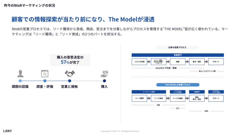 ※The Modelとは、マーケティング、営業、カスタマーサクセスの各プロセスを可視化・数値化し、営業の効率を最大化する営業プロセスモデルです。セールスフォース社が提唱し、現在では多くのBtoB企業が採用しています。