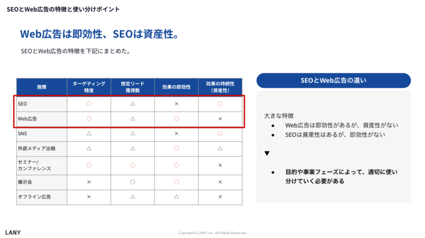 広告とSEOをどう使い分ける?施策選定のポイントは「即効性と資産性」