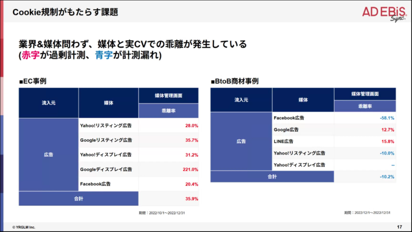 - クロスデバイス/ブラウザにより媒体間での乖離が生じてしまう。