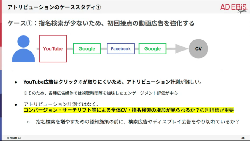 手軽なのは有償の計測ツールを使う方法で、セミナー内ではアドエビスが紹介されていました。こうしたツールを使えば、複雑なデータ分析の知識がなくても、より正確な広告効果測定が可能になります。
