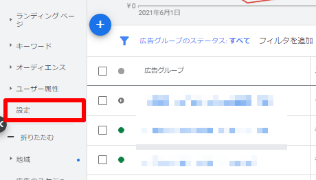 1.共有予算を使用しているキャンペーンの設定をクリックします。