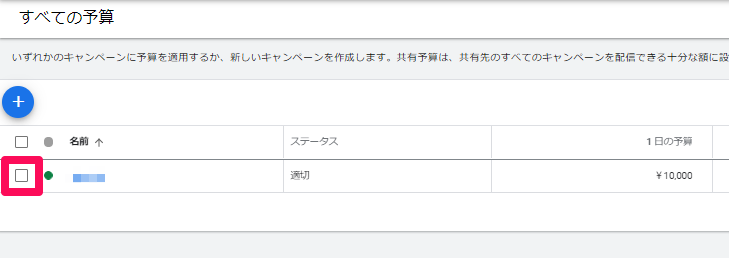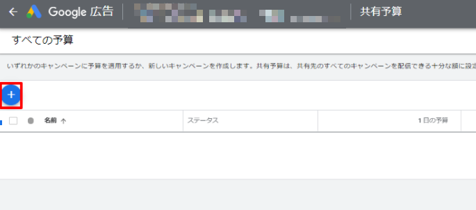 共有予算は「下書きとテスト」の対象となっているキャンペーンでは使用できません。