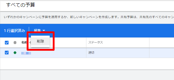 もし、一つの共有予算からキャンペーンの関連付けを全て解除した場合、共有予算自体はもう不要となったかも知れません。そのため、以下で共有予算の設定を完全に共有ライブラリから削除する方法を紹介します。