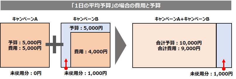 「1日の平均予算」の場合では、キャンペーンBの1,000円分が未配信となります。
