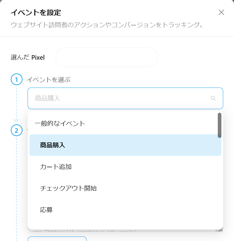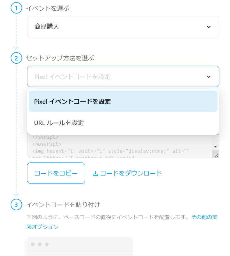 Pixelイベントコードを管理画面で設定する方法を見ていきましょう。