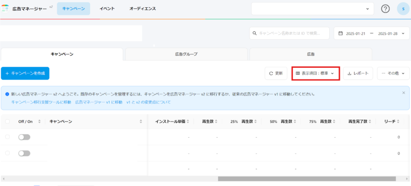 続いては、キャンペーン配信開始後の広告経由のイベント件数の確認方法について解説します。