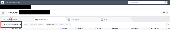 ①まず、広告マネージャーより「キャンペーンを作成」をクリックします