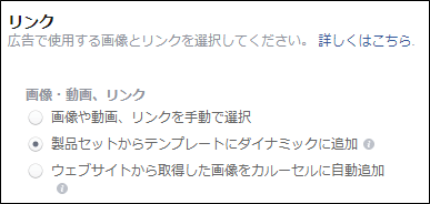 続いて「リンク」の項目で、「製品セットからテンプレートにダイナミックに追加」を選択します。
