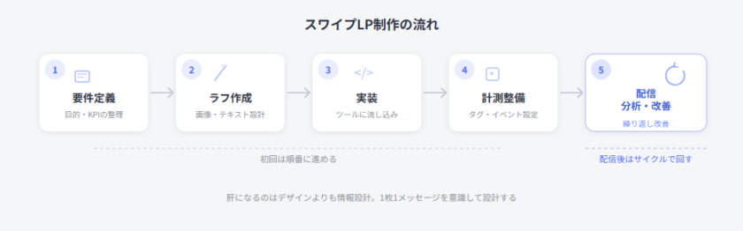 スワイプLP制作は、基本的に以下の流れで進めます。