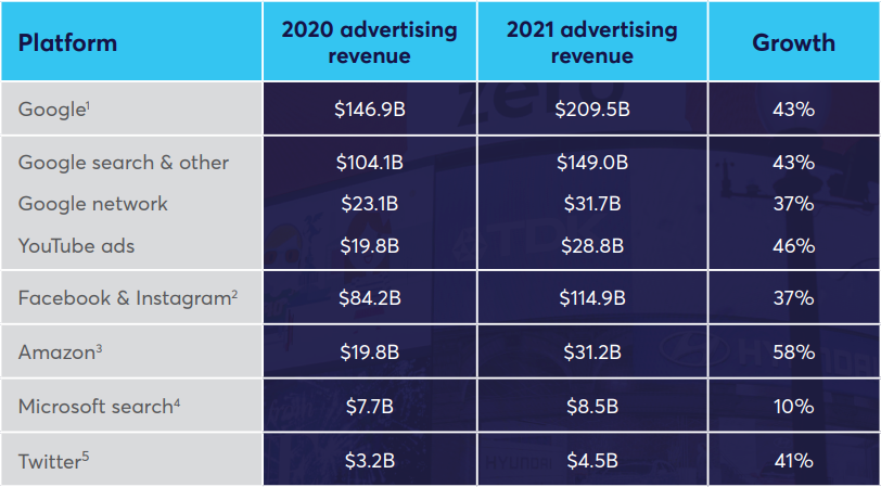 媒体ごとの成長も目を見張るものがあります。2020年から2021年の広告費を比較すると、GoogleやFacebookのように3割~4割伸びた媒体が多いのですが、中でもAmazonが前年比で58%と非常に大きい成長を遂げました。