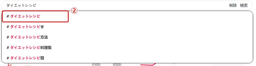 ②検索結果から関連動画をみたいハッシュタグを選択、詳細ページに遷移