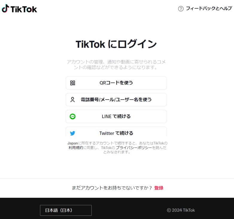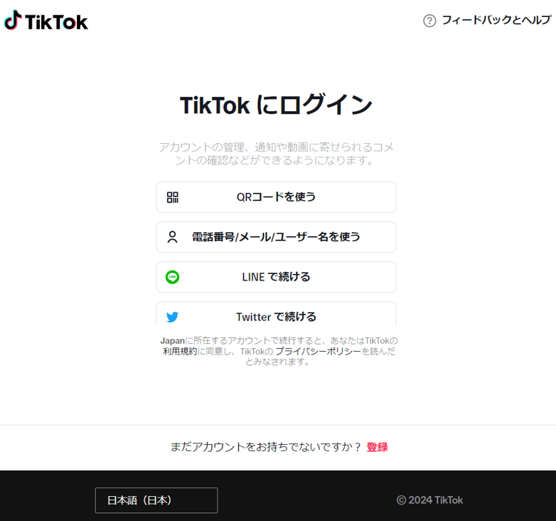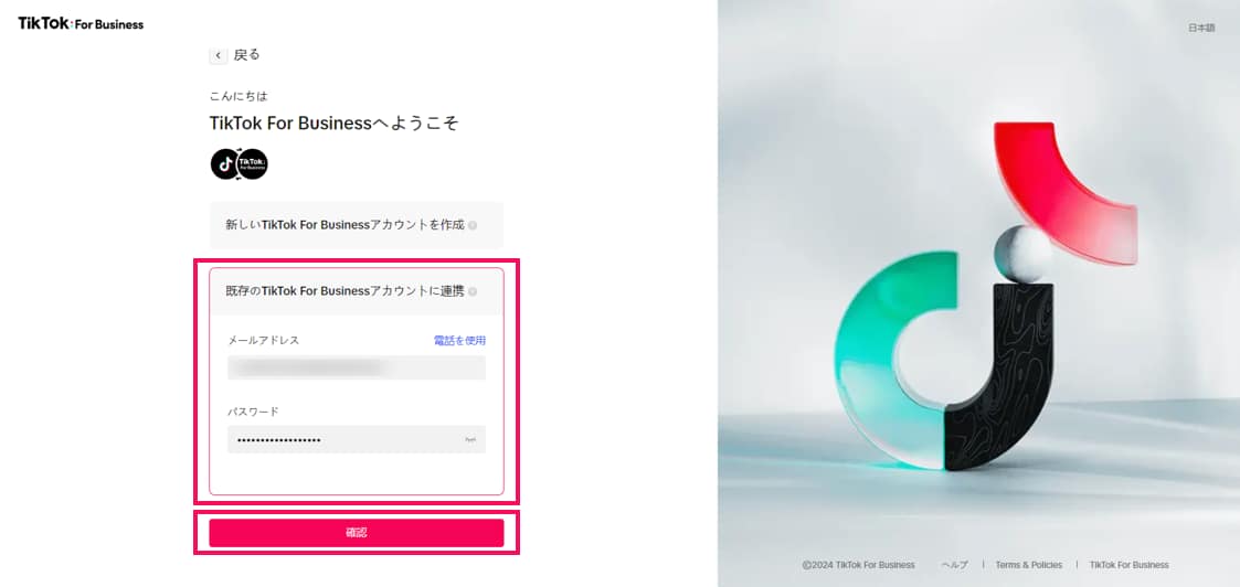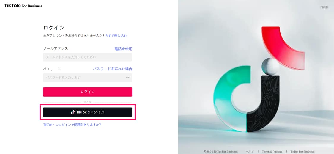 任意の方法で、TikTokビジネスアカウントにログインします。