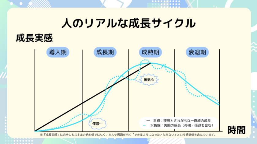 社内で成熟期にいち早く到達したメンバーの例を観察すると、成熟期にたどり着く前の「導入期」や「成長期」を実りあるフェーズにすることが、一番の近道であるとわかってきました。