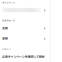 通常通り広告グループの情報を入力し、最低でも2つの広告を作成します。「広告グループ」の配下に「定数」「変数」と表示されているため少し分かりづらいかもしれません。定数が広告グループの設定詳細となっており、「変数」にはテスト対象となる2つ以上の広告が入っています。