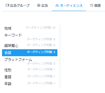 配信対象地域を日本にしている場合は、日本以外のターゲットには配信されませんが、それによりオーディエンスサイズが足りない場合は、会話ターゲティング以外のターゲティングも検討する必要があります。