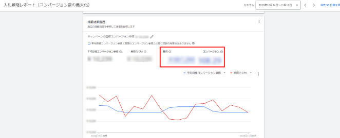 | 目標コンバージョン単価 | 費用、コンバージョン数 | |