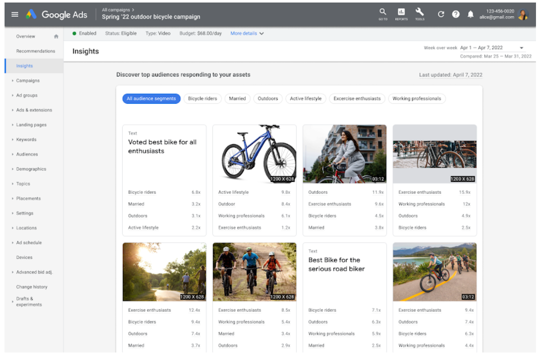 特に分析情報(インサイトページ)の新機能では、アセットオーディエンスの分析が可能になります。どういったアセット(画像・テキスト)が、様々なオーディエンスに有効なのかを具体的にインデックスされた数値とともに表示してくれるため、より成果を出しやすいクリエイティブの作成につながるでしょう。