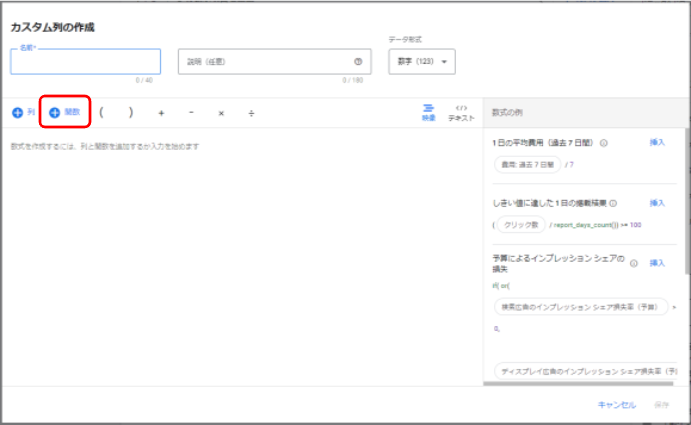 - 数式に指標以外の列(キャンペーン名、予算など)を追加