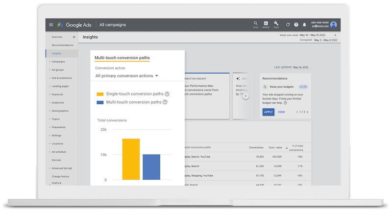 アトリビューションインサイトページでは、Google 検索、Google ディスプレイ ネットワーク、YouTube などの Google サービスで広告がどのように相互に連携してコンバージョンの増加を実現しているかを確認が可能に。