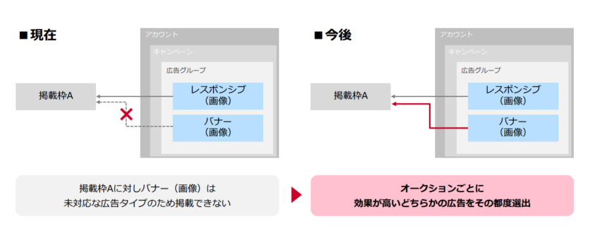 これに対し、広告タイプにより配信可能な広告枠の数が限られる状況を改善し、各掲載枠に掲載できる広告タイプを拡大することが発表されています。
