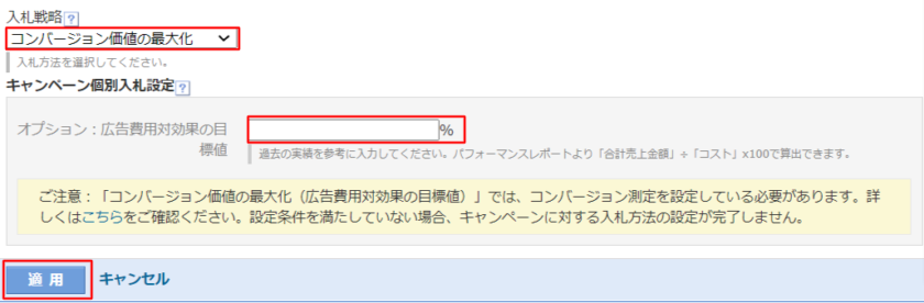 ただし、1日の予算の中でできるだけ価値の高いコンバージョンを多く獲得するように自動で入札を行うため、予算の範囲内でできるだけ利益率の高い申込みや購入を獲得したい場合に利用するのがよいでしょう。
