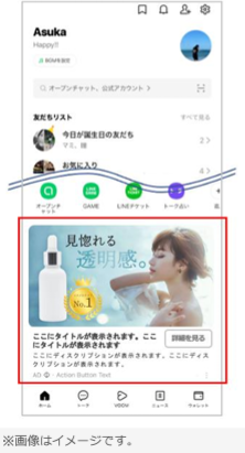 LINEアプリの入口であるホーム画面に動画クリエイティブが出ると目を引きそうですね。