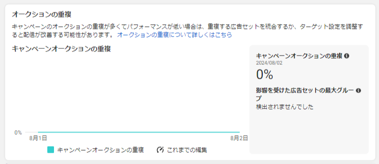 キャンペーン内の広告セットでオークションの重複がどのくらい発生しているのかを確認できるようになりました。