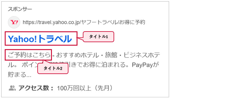 広告に表示されたタイトルが1のみの場合、後に続く説明文の先頭に表示されたタイトルとは別のタイトルが連結して表示されるようになります。