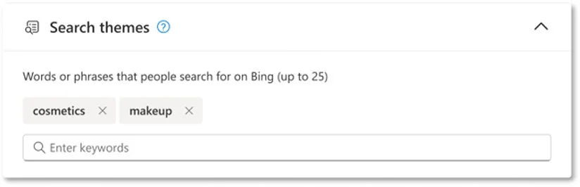 検索テーマは、キャンペーンの最適化のため、Bingで検索されるであろう広告主のビジネスに関連したキーワードやフレーズです。