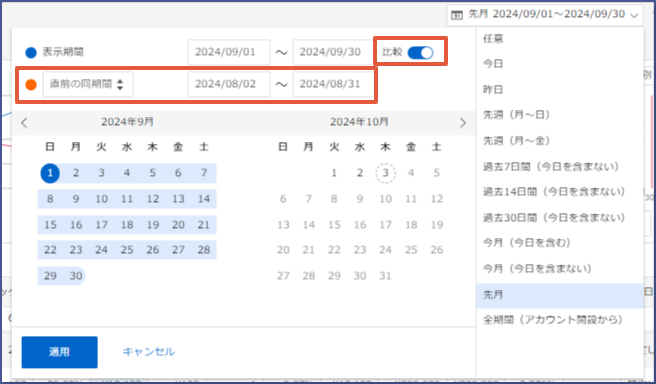 公式ヘルプ:【検索広告】異なる期間のパフォーマンスデータを比較する機能について - LINEヤフー for Business