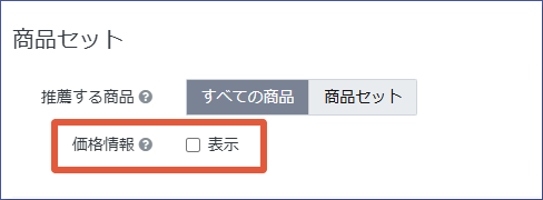 広告グループページの商品セット内にある「価格情報」の項目で「表示」にチェックを入れると、商品フィードに登録した商品の価格情報を広告に表示できます。