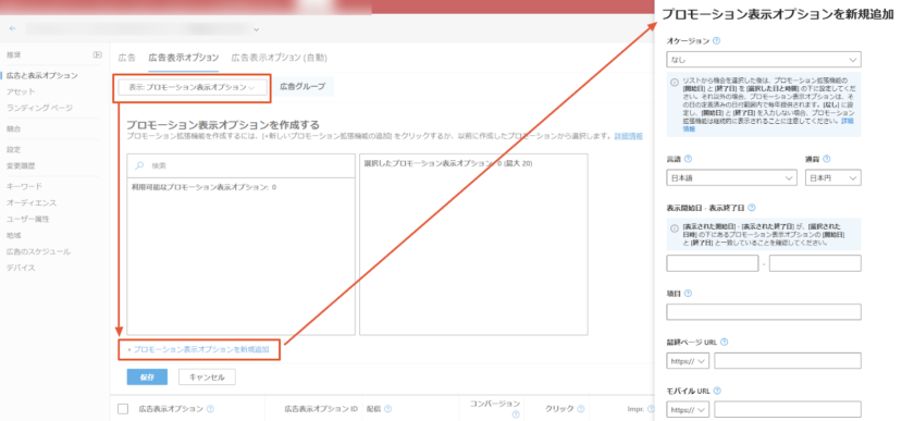 広告表示オプションの「プロモーション表示オプション」が利用可能に