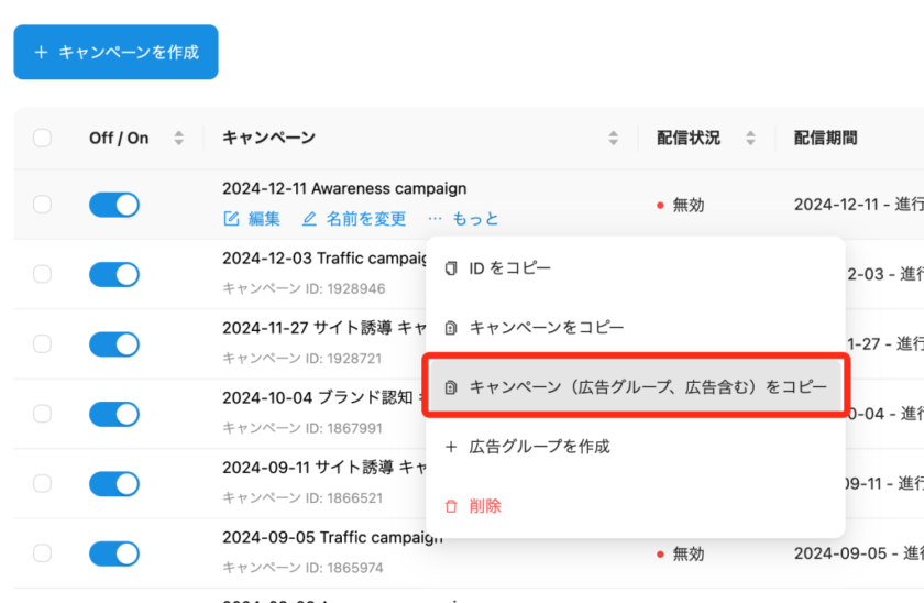 キャンペーン全体(広告グループ、広告含む)をコピーできる機能がリリースされました。