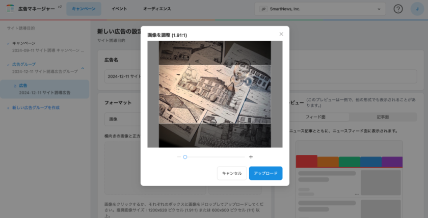 静止画広告の入稿時に、広告管理画面上で画像サイズが調整できるツールが提供開始されました。