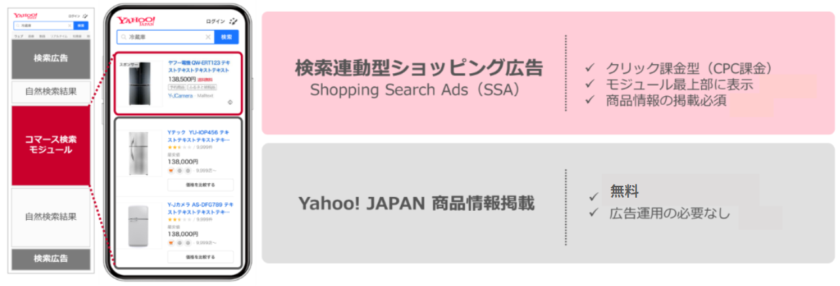2025年5月14日から、Yahoo!広告の検索広告(ショッピング)において、検索連動型ショッピング広告を掲載する際に配信必須となっている「商品情報掲載」が成果課金型ではなく、無料になりました。