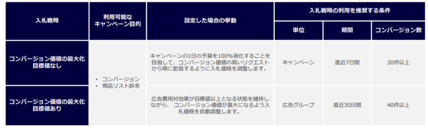 • 運用上のポイント: 導入には、正確なコンバージョン値の計測設定が不可欠です。また、機械学習による最適化のため、一定の学習期間が必要となる場合があります。他の自動入札戦略と同様に、導入初期はパフォーマンスを注視し、必要に応じて目標値や予算を調整することが重要です。