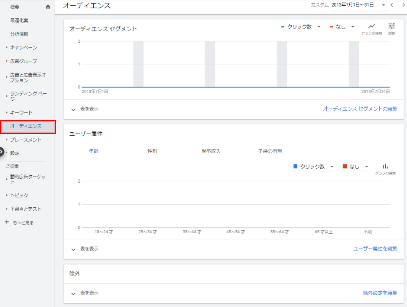 | 除外 | 広告のターゲットから除外したセグメント |