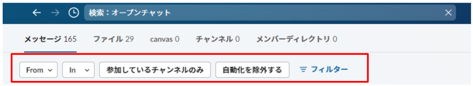 この検索機能を活用すると、自分が参加していないオープンなチャンネルでの発言も見れるため、情報の見落としを防ぐだけでなく、Slackを見ているだけでは得られなかった情報のキャッチアップもできるおすすめ機能の一つです。