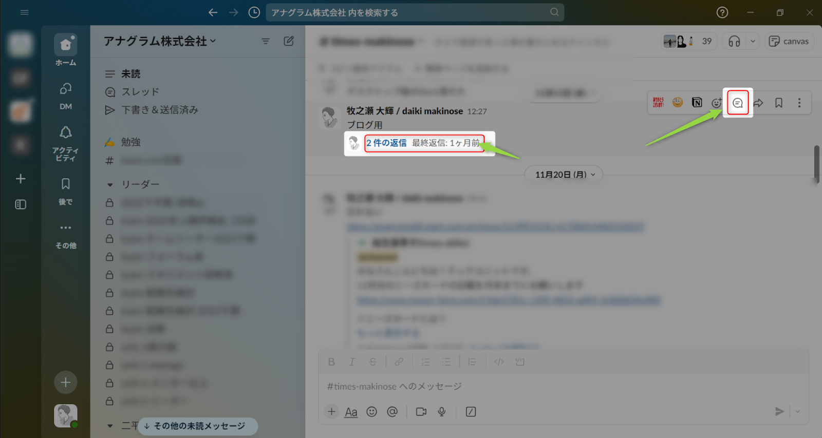 その際に重宝するのがSlack上で活用できるショートカットキー「Alt + クリック:未読にする」の機能です。