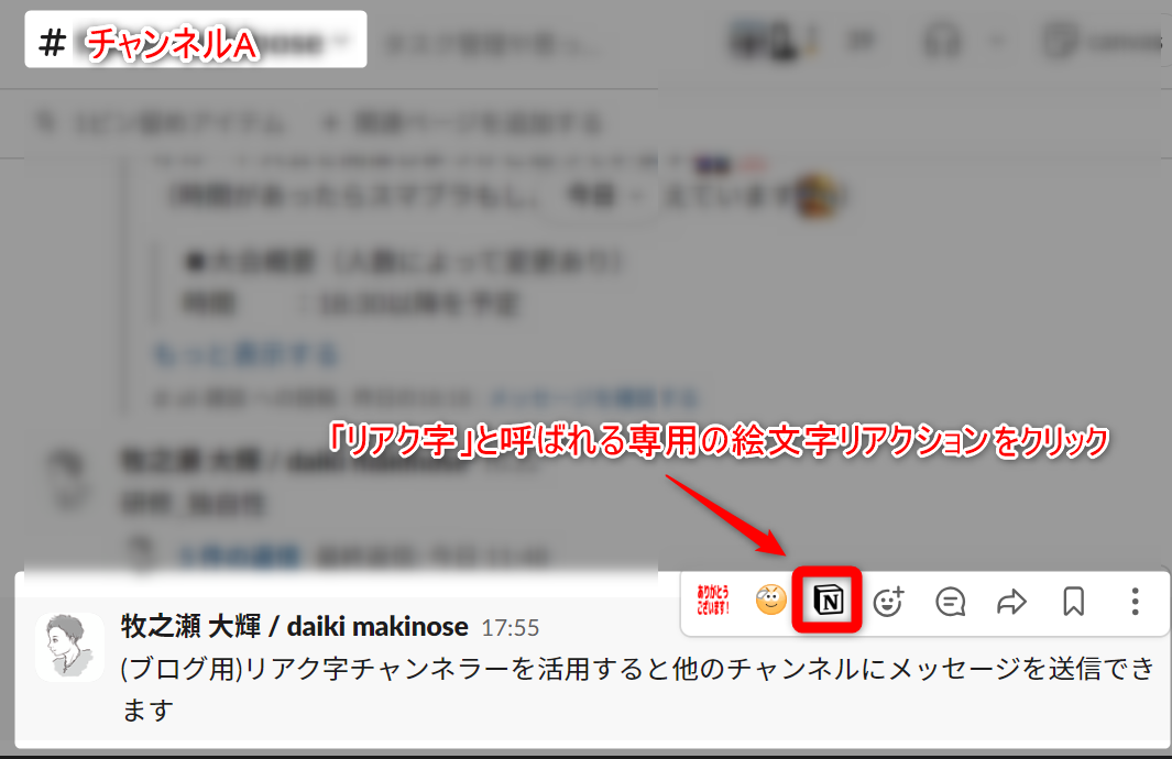 リアク字チャンネラーは投稿に特定のリアクションをすると投稿したチャンネルとは別のチャンネルにメッセージを送信することができます。