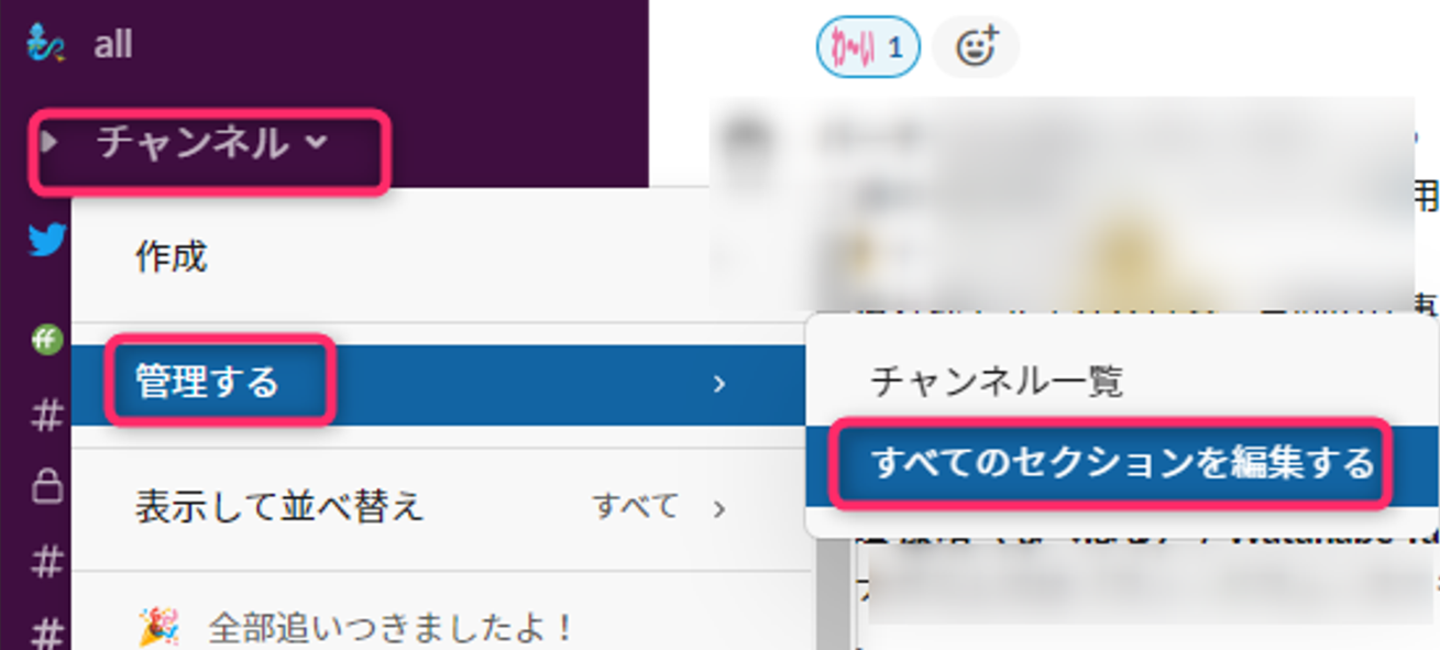 セクション分けしたあとは、チャンネルをクリック&ドラッグでセクション移動できるので、見やすいように設定してみてください