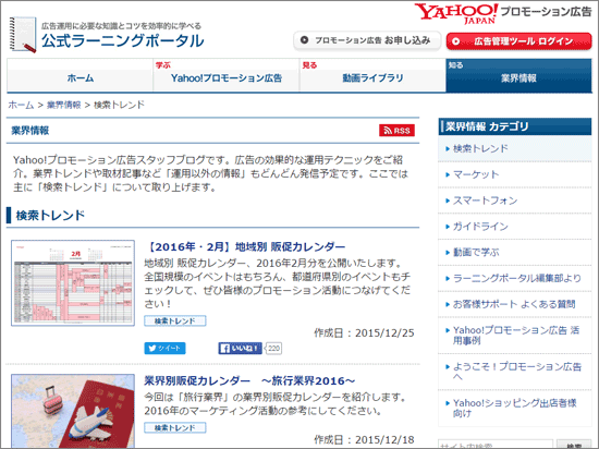 公式ラーニングポータル 「検索トレンド」- Yahoo!プロモーション広告