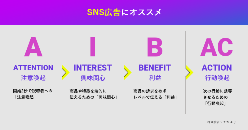 TikTokのような短尺動画やスキップ可能な配信面の場合は、冒頭のインパクトがより重要となるため、AIBACを基準に考えます。