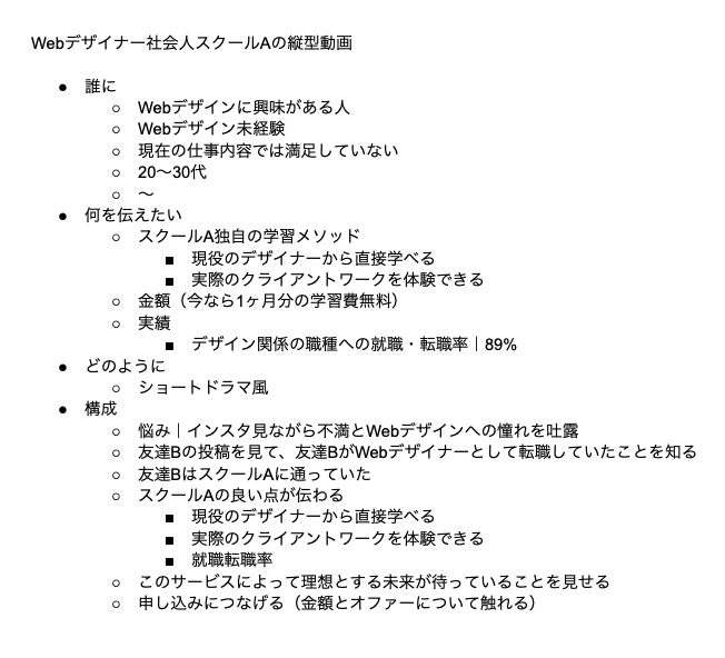 動画制作に必要な情報を整理したら、次は動画の構成を考えていきます。