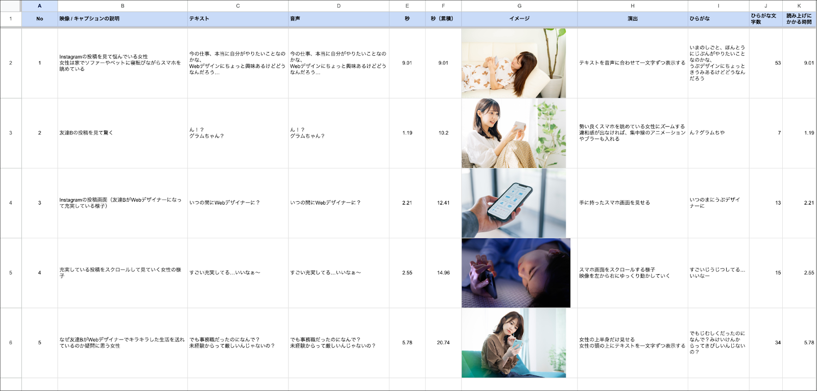 媒体によっては動画の秒数に規定があります。セリフ・ナレーションを自分で読み上げて、実際に話し切るのにどのくらいの秒数がかかるか、確認した上で原稿を見直しましょう。