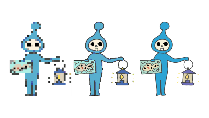 解像度とは、画像・動画を構成する点(ピクセル)の密度のことです。スマートフォンで画像を拡大するとわかりやすいのですが、よく見ると細かい点で構成されていますよね。この密度が高ければ高いほど、きめ細やかな表現になります。