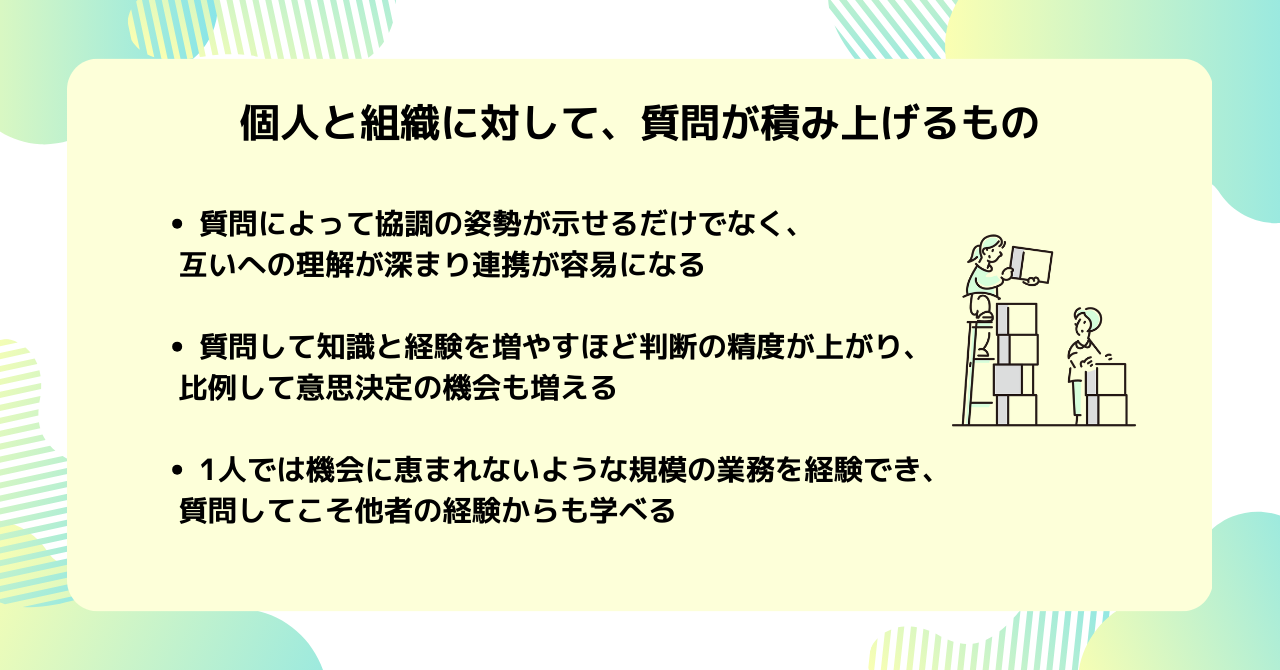 この記事では、個人が組織で働く意義を深め、組織がより良い社会を創るために、質問が果たす役割について紹介します。